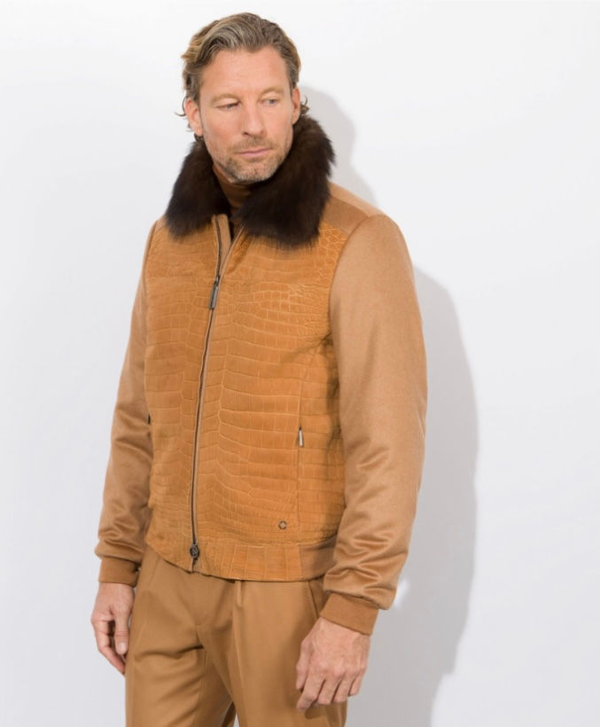 CROCODILE, LAMB AND DEERSKIN LEATHER BLOUSON
